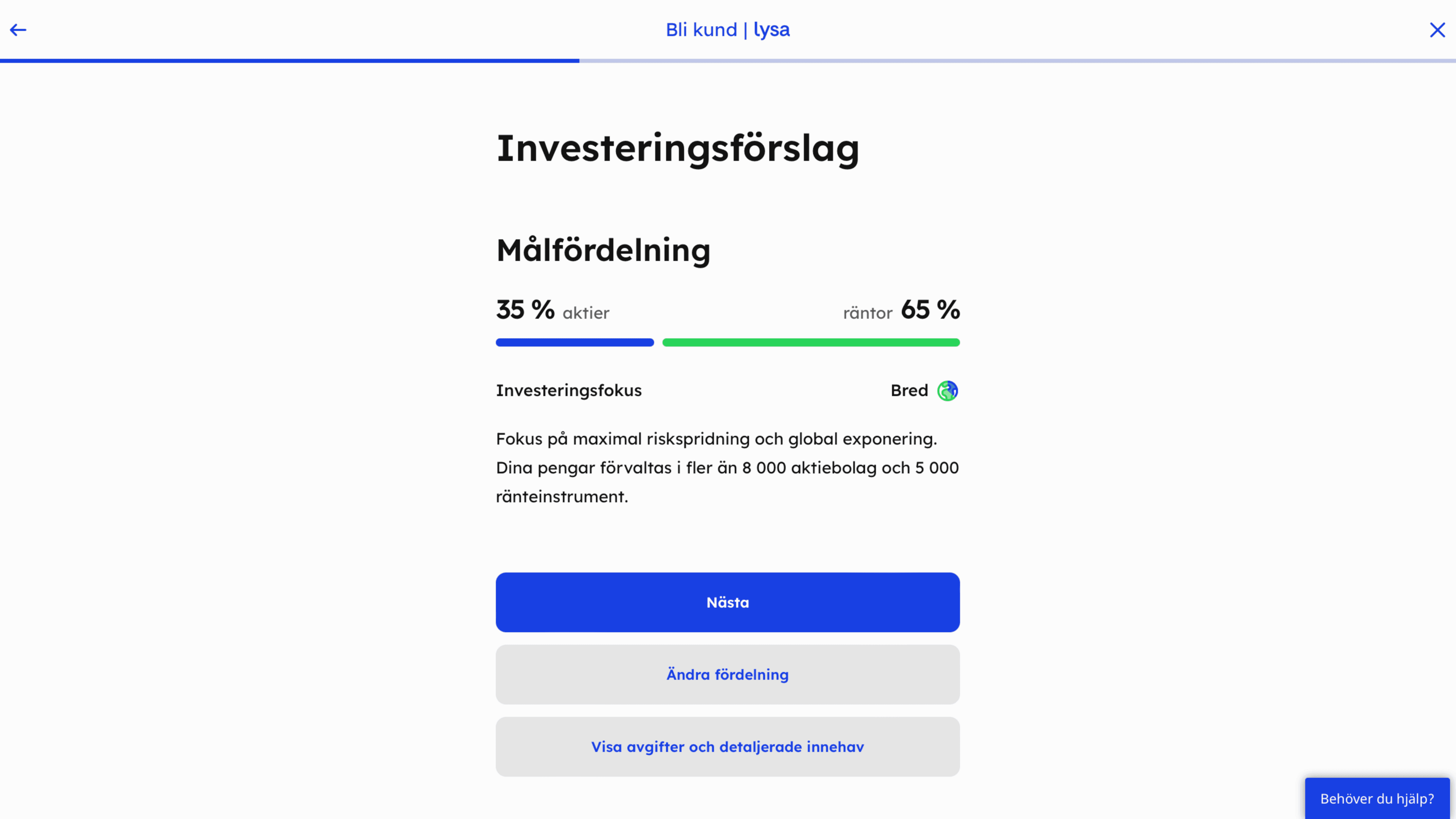 Baserat på vad du svarat på frågorna som Lysa ställt dig om investeringar, kommer roboten presentera ett investeringsförslag som den tror passar dig bäst.