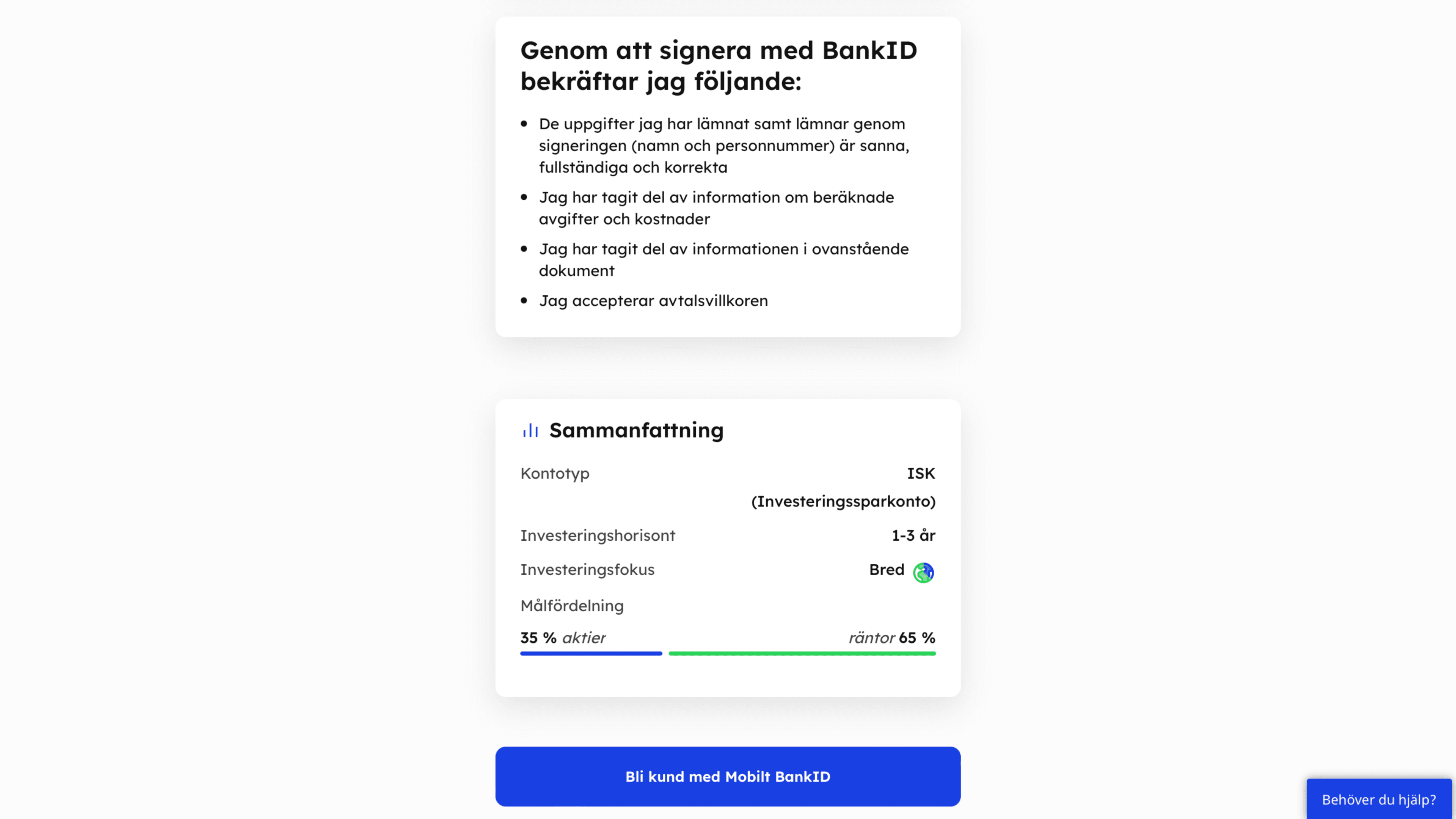 Det sista du behöver göra är att läsa igenom alla dokument och signera att du öppnar ett konto hos Lysa fondrobot.