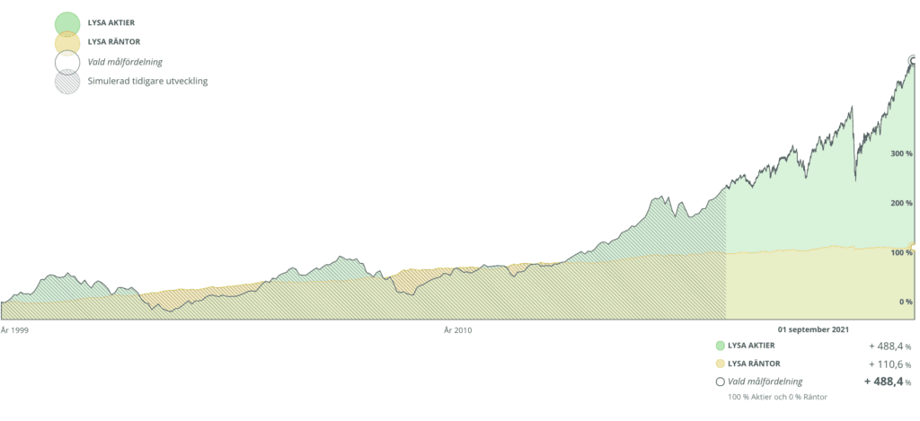 Om du vill titta närmare på och modellera avkastningen utifrån dina val och historiska data har Lysa ett verktyg för att bättre förstå resultaten, som du hittar här.