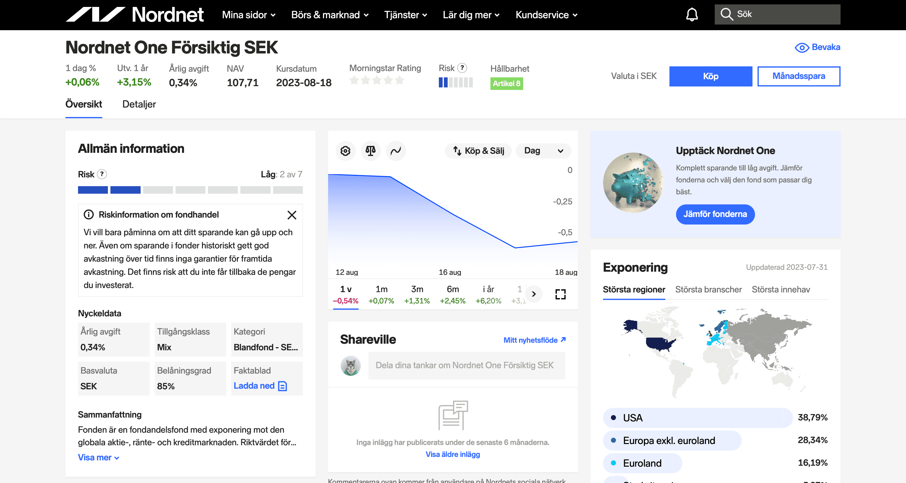 Läs alltid på om fonden innan du investerar i den. Du kan hitta information som exponering mot olika marknader, risk nivå och avgift.