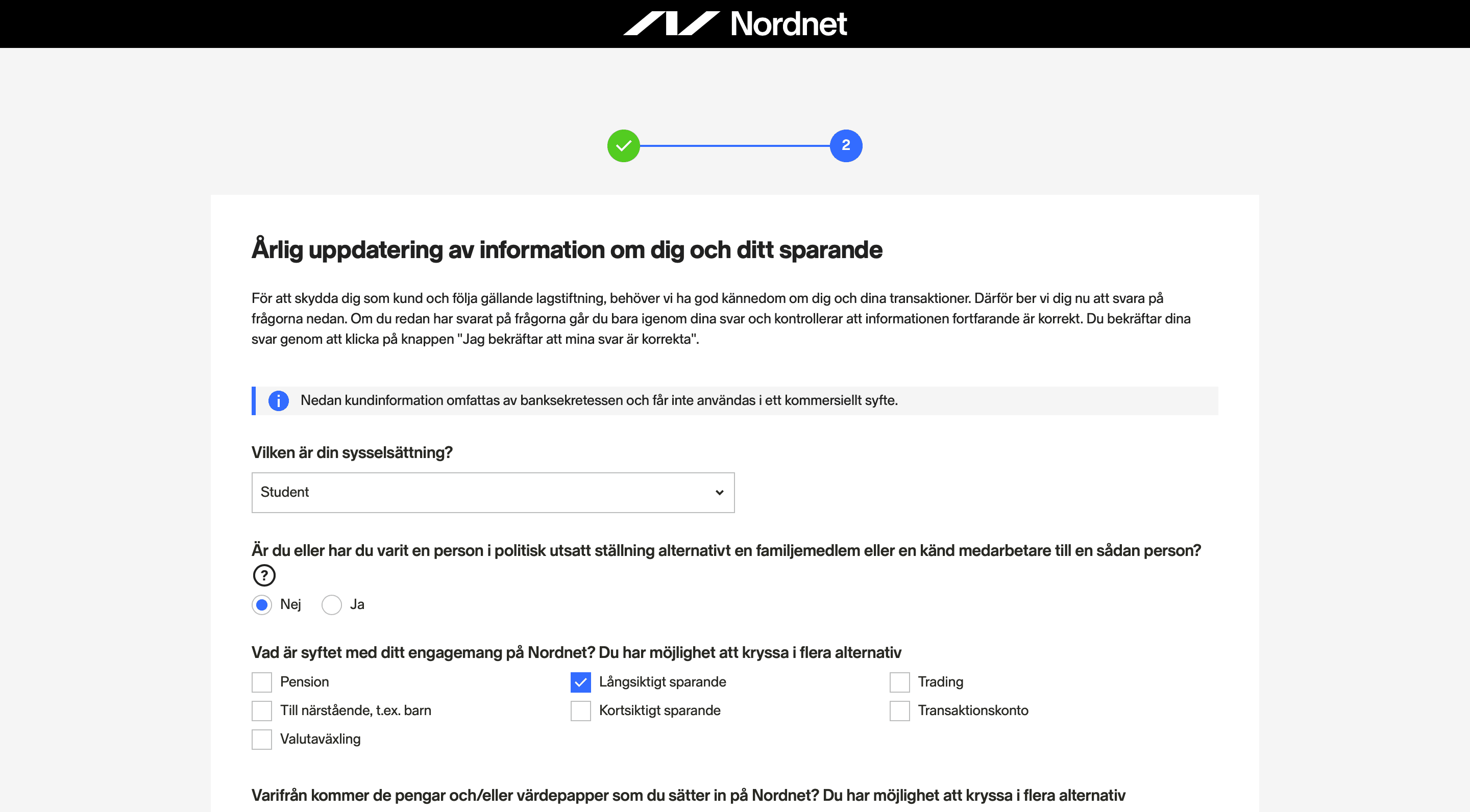 Här behöver du fylla i uppgifter om dig själv och svara på en del frågor angående om ditt sparande.